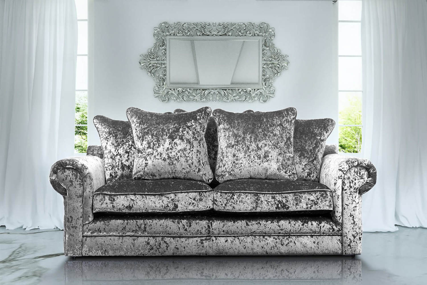 CHARLOTTE 3+2 SOFA IN SILVER CRUSHED VELVET