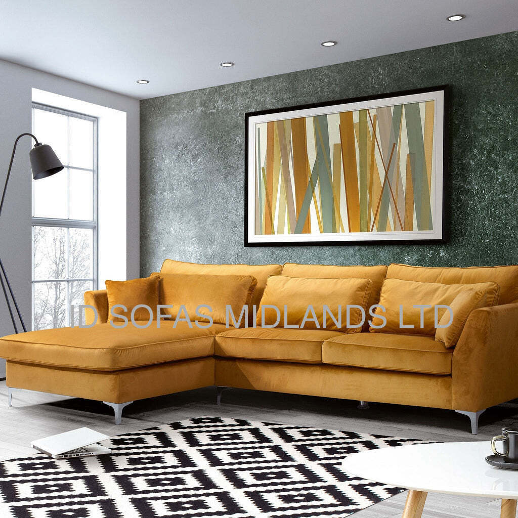 We introduce the newest addition , The Deva chaise corner sofa in a soft plush fabric , with deep filled foam seats and formal backs.
