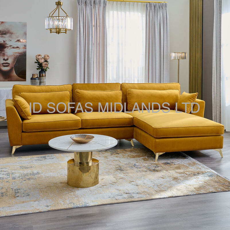 DEVA CHAISE CORNER SOFA IN GOLD PLUSH
