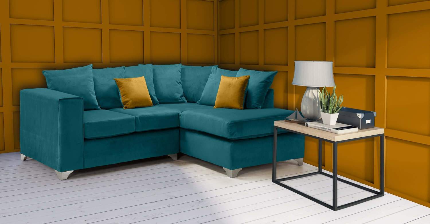 ELLA CORNER 1 SOFA IN TEAL FRENCH VELVET