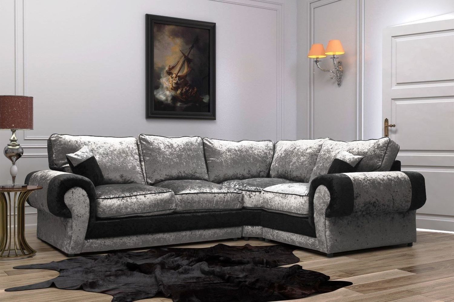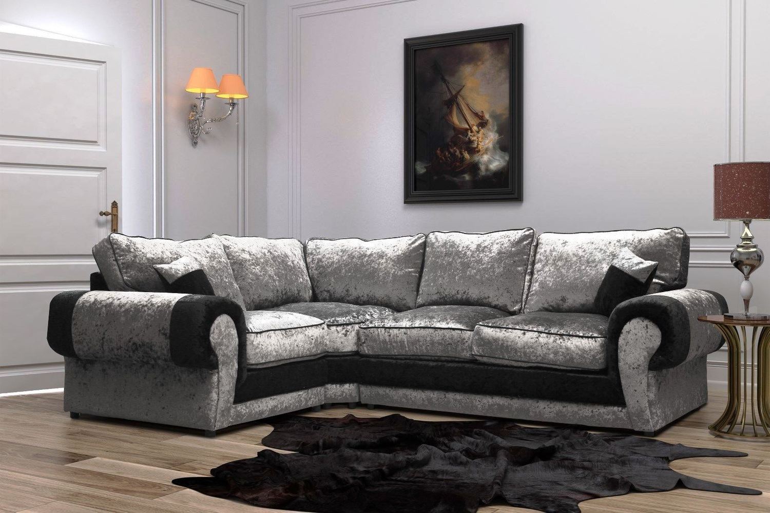 TANGO 2 CORNER 1 SOFA IN BLACK/SILVER VELVET
