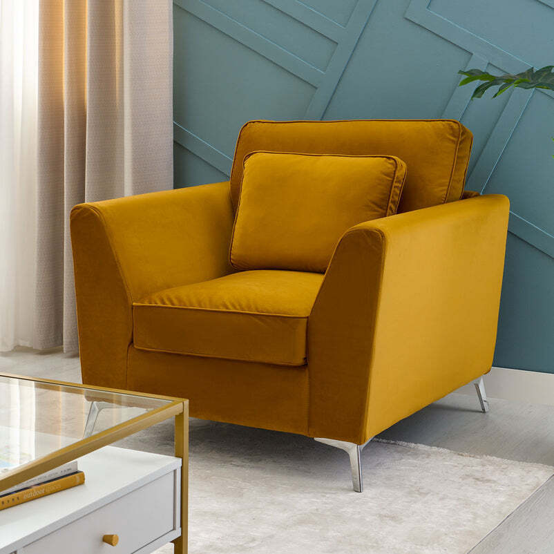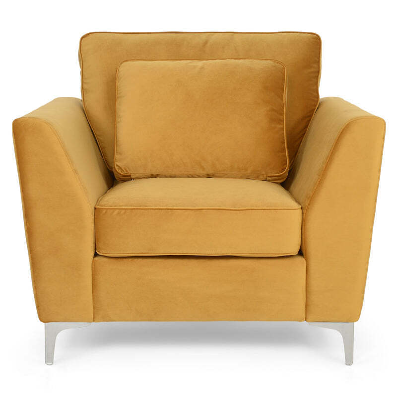 We introduce the newest addition , The Deva Armchair in a soft plush fabric , with deep filled foam seats and formal backs.